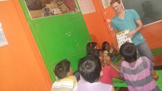 In the slums happy kids with our volunteers.